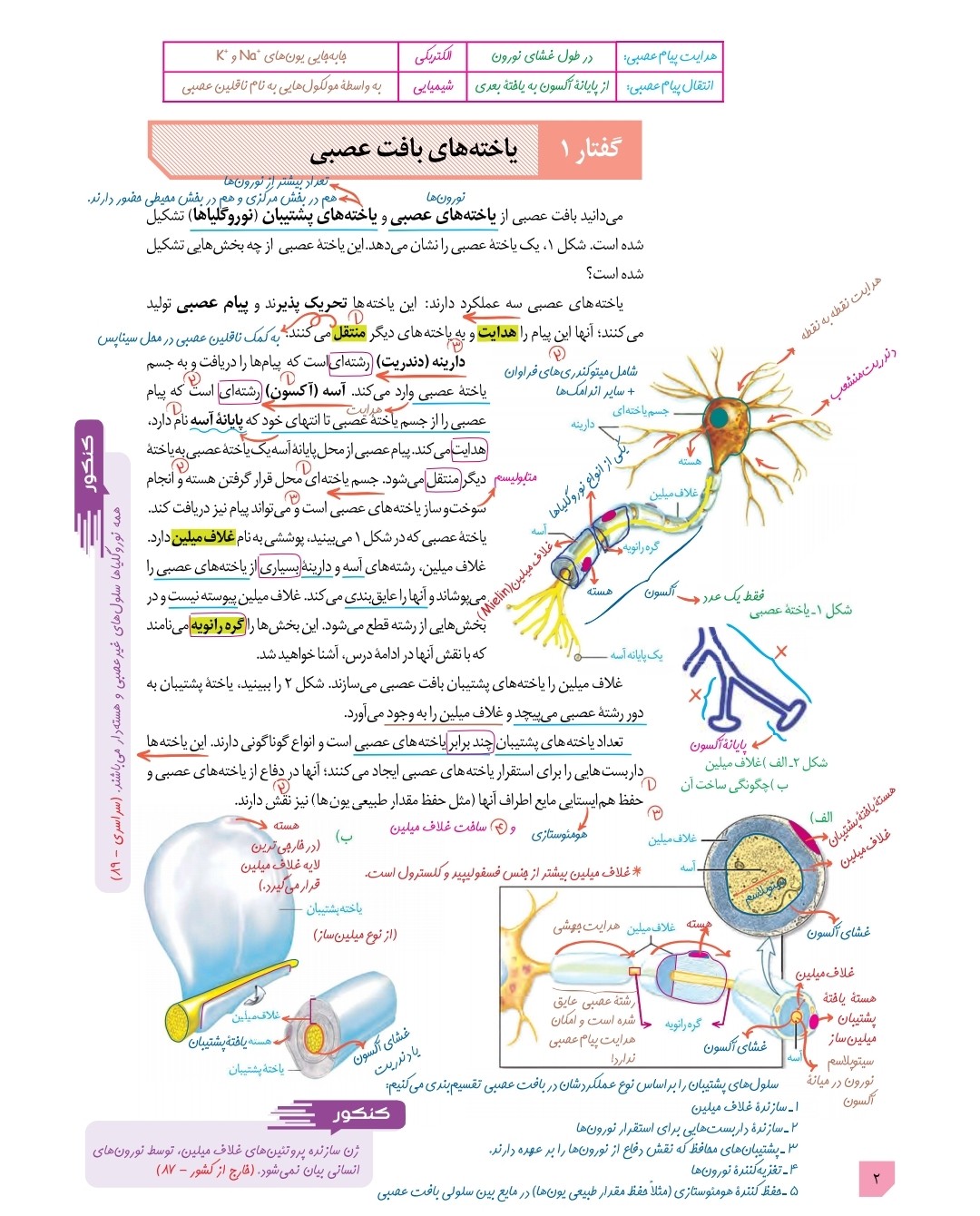 در این کتاب متن کتاب درسی به چاپ رسیده، مطالب مهم اون هایلایت شده و مطالب مرتبط با پیکان بهم وصل شدن.